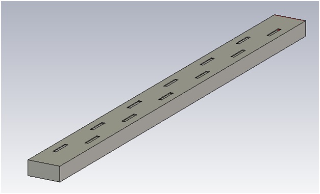 Данное устройство представляет собой щелевую антенну, выполненную на прямоугольном волноводе с двенадцатью узкими продольными прямоугольными щелями.